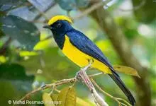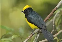 冕雀:共有4个亚种。体长20-21厘米,体重34-49克。具蓬松的黄色长型冠羽。雌鸟似雄鸟,但喉及胸深橄榄黄色,上体沾橄榄色。不会被误认的体大的黄色及黑色山雀。混群栖于原始林及次生林的林冠层,…全部>>