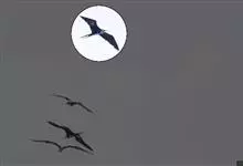 军舰鸟是鹈形目军舰鸟科军舰鸟属鸟类的通称,又称军人鸟。身体较小,腿又短又细,长有钩状嘴;翅膀细长,有很长的叉形尾巴。雄鸟体羽全黑,雌鸟大多数背部、头部和腹部为略带黑色的褐色,而胸部和腋距为白色。…全部>>