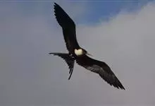 军舰鸟是鹈形目军舰鸟科军舰鸟属鸟类的通称,又称军人鸟。身体较小,腿又短又细,长有钩状嘴;翅膀细长,有很长的叉形尾巴。雄鸟体羽全黑,雌鸟大多数背部、头部和腹部为略带黑色的褐色,而胸部和腋距为白色。…全部>>