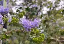 蒙古莸:为唇形科莸属落叶小灌木。常自基部即分枝,嫩枝紫褐色,圆柱形,有毛,老枝毛渐脱落。叶片厚纸质,线状披针形或线状长圆形,背面密生灰白色绒毛。聚伞花序腋生,无苞片和小苞片,花萼钟状,花冠蓝紫色。…全部>>
