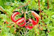 山丹是百合科百合属的多年生草本植物。鳞茎卵形或圆锥形,鳞片长圆形或长卵形,白色;叶散生茎中部,线形,边缘有乳头状突起;花单生或数朵成总状花序,花鲜红色,常无斑点,花被片反卷,…全部>>