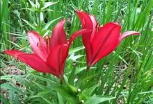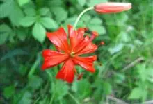 山丹是百合科百合属的多年生草本植物。鳞茎卵形或圆锥形,鳞片长圆形或长卵形,白色;叶散生茎中部,线形,边缘有乳头状突起;花单生或数朵成总状花序,花鲜红色,常无斑点,花被片反卷,…全部>>