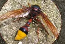 金环胡蜂是胡蜂科、胡蜂属昆虫。雌蜂体长约40毫米,工蜂体长25毫米,雌蜂体黑褐色,头部橙黄色,额片前缘弓形,中央凹,两边突出;触角12节,膝状,暗褐色;中胸背部中央有很细纵沟;翅膜质半透明,…全部>>