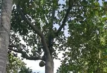菠萝蜜是桑科波罗蜜属常绿乔木。老树常有板状根;叶革质,螺旋状排列,椭圆形或倒卵形;花雌雄同株,花序生于老茎或短枝上;果椭圆形至球形,成熟时黄褐色,核果长椭圆形;花期3-8月,果期6-11月。…全部>>