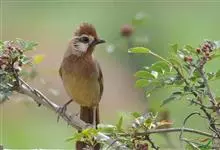 白颊噪鹛是雀形目噪鹛科噪鹛属鸟类,又称土画眉、小画眉、小噪鹃。成鸟额至头顶栗褐色,长眉纹、眼先和颊纹棕白色,眼后至耳羽深褐色,…全部>>