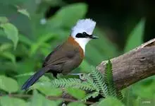 白冠噪鹛是画眉科噪鹛属的鸟类。是中型鸟类,体长28-32厘米。常见于常绿阔叶林、杂有竹丛的树林以及林下灌丛。该物种的模式产地在喜马拉雅山脉西部。主要以金龟甲、步行虫、甲虫、蝉、鳞翅目幼虫等昆虫为食,…全部>>