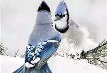 冠蓝鸦:体长22-30厘米,体重70-100克,翼展34-43厘米。顶冠明显,羽色为薰衣草蓝或淡蓝色,颈后、翅膀内侧、尾羽内侧和面部为白色。腹部为米白色,颈部有黑色领环,延伸至面部两侧,…全部>>