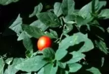 冬珊瑚,现名珊瑚豆 Bitter)。直立小灌木,多分枝成丛生状,作1-2年生栽培。株高30-60厘米。叶互生,狭长圆形至倒披针形。夏秋开花,花小,白色,腋生。浆果,深橙红色,圆球形,直径1-1.5厘…全部>>