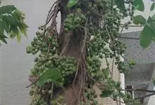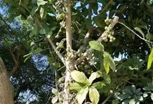 大果榕是桑科榕属的小乔木,株高可达10米;幼枝被柔毛;叶互生,宽卵状心形或近圆形;雄花无梗、匙形、花丝长,雌花生于雌株榕果内,子房白色;榕果簇生于树干基部或老茎短枝上、扁球形或陀螺形,…全部>>