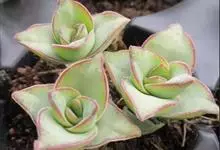 若歌诗是景天科青锁龙属的多肉植物。植株易丛生,茎淡绿色,细柱状,冷凉季节在阳光下会变红色;叶片肉质对生,叶片长可达3-3.5厘米,叶形像微型的汤匙,叶缘微黄或微红色,在充足的光照下,叶片会变得肥厚饱满,…全部>>