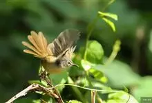 黄腹鹪莺:体长13厘米,是一种体型略大而尾长的橄榄绿色鹪莺。喉及胸白色,以下胸及腹部黄色为其特征。头灰,有时具浅淡近白的短眉纹;上体橄榄绿色;腿部皮黄或棕色。换羽导致羽色有异。繁殖期尾较短,…全部>>