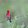 酒红朱雀小型鸟类,体长13~15厘米。雄鸟通体深红色,头部深朱红或棕红色,下背和腰玫瑰红色,眉纹粉红色而具丝绢光泽。两翅和尾黑褐或灰褐色、具暗红色狭缘,内侧两枚三级飞羽具淡粉红色先端。…全部>>