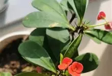 铁海棠为大戟科大戟属蔓生灌木植物;茎多分枝,具纵棱,呈旋转状;叶互生,通常集中于嫩枝上;每个花序基部边缘具微小的红色尖头;苞叶先端圆且具小尖头,无柄,上面鲜红色,下面淡红色;苞片丝状;子房光滑无毛,…全部>>