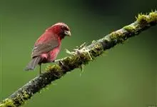 普通朱雀是雀形目雀科朱雀属鸟类,又名红朱雀、马料、青麻料。雄鸟上体红色,下体淡红色;头部、喉部、胸部及腰部亮红色;背部褐色染红色;两翼及尾黑褐色,羽缘染红色。雌鸟上体橄榄褐色,下体近白色,…全部>>
