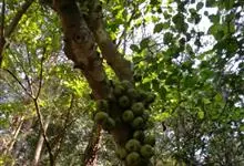 大果榕是桑科榕属的小乔木,株高可达10米;幼枝被柔毛;叶互生,宽卵状心形或近圆形;雄花无梗、匙形、花丝长,雌花生于雌株榕果内,子房白色;榕果簇生于树干基部或老茎短枝上、扁球形或陀螺形,…全部>>