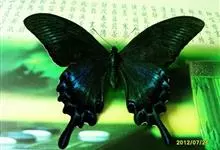 绿带翠凤蝶,又名深山凤蝶,为凤蝶科凤蝶属下的一种。分布于韩国、日本、中国台湾、中国大陆等地。翅黑色,满布金绿色鳞片。前翅亚缘具黄绿色横带纹。后翅外缘有6个略呈新月形的红斑,…全部>>