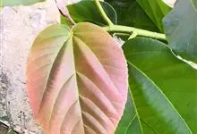 薜荔是桑科、榕属攀援或匍匐灌木。叶两型,叶片卵状心形,纸质,先端渐尖,叶柄很短,叶面无毛,背面被黄褐色柔毛,基生叶脉三出,托叶小,披针形,榕果单生叶腋;瘿花果大梨形,顶生苞片脐状,红色,…全部>>