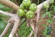 大果榕是桑科榕属的小乔木,株高可达10米;幼枝被柔毛;叶互生,宽卵状心形或近圆形;雄花无梗、匙形、花丝长,雌花生于雌株榕果内,子房白色;榕果簇生于树干基部或老茎短枝上、扁球形或陀螺形,…全部>>