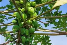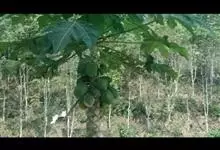 番木瓜,番木瓜科番木瓜属的常绿软木质小乔木,高达10米,具有乳汁;茎不分枝或有时于损伤处分枝;叶大且聚生于茎顶,近似盾形,叶柄中空;花单性或两性,有些品种雄株偶尔生两性花或雌花,…全部>>
