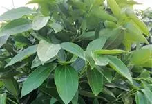 天竺桂,是樟科樟属乔木植物,枝条细弱呈圆柱形,无毛;叶近对生或在枝条上部互生,呈卵圆状长圆形或披针形,上面绿色,下面灰绿色;花序梗与序轴均无毛,花被片呈卵形;果长圆形,…全部>>