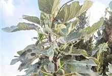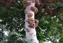 大果榕是桑科榕属的小乔木,株高可达10米;幼枝被柔毛;叶互生,宽卵状心形或近圆形;雄花无梗、匙形、花丝长,雌花生于雌株榕果内,子房白色;榕果簇生于树干基部或老茎短枝上、扁球形或陀螺形,…全部>>