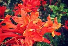 硬骨凌霄 Spach)是紫葳科硬骨凌霄属的多年生常绿木质藤本植物。茎多分枝;枝带绿褐色;叶对生,奇数羽状复叶,边缘有锯齿;总状或圆锥花序顶生,花冠漏斗状,橙红色或橙黄色;蒴果长线形,略扁;花期几乎全年,…全部>>