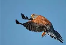 红隼:是隼科、隼属的小型猛禽之一。体重173-335克,体长305-360毫米。翅狭长而尖,尾亦较长,外形和共同爪隼非常相似。雄鸟头蓝灰色,背和翅上覆羽砖红色,具三角形黑斑;腰、尾上覆羽和尾羽蓝灰色,…全部>>