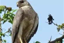 褐耳鹰的体形比苍鹰要小得多,为小型猛禽,体长为31-44厘米,体重217-325克。上体灰色,下体具赤褐色横斑。第6枚初级飞羽外羽片无缺刻,次外侧的4对尾羽具5道黑褐色横斑。眼先具白色短羽。…全部>>