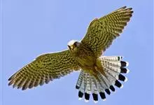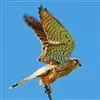 红隼:是隼科、隼属的小型猛禽之一。体重173-335克,体长305-360毫米。翅狭长而尖,尾亦较长,外形和共同爪隼非常相似。雄鸟头蓝灰色,背和翅上覆羽砖红色,具三角形黑斑;腰、尾上覆羽和尾羽蓝灰色,…全部>>