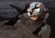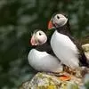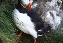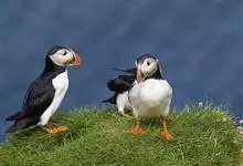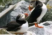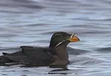 角嘴海雀,是海雀科、角嘴海雀属的中型海鸟,体长32-41厘米,嘴短而粗呈圆锥状、橙色。夏羽上嘴基部有一个三角形的突出物,形状如角。头两侧各有两条由白色丝状饰羽组成的纵带,分别位于眼上和眼下后方的头侧…全部>>
