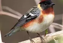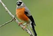 燕雀属小型鸟类,体长14-17厘米。嘴粗壮而尖,呈圆锥状。雄鸟从头至背辉黑色,背具黄褐色羽缘。腰白色,颏、喉、胸橙黄色,腹至尾下覆羽白色,两胁淡棕色而具黑色斑点。两翅和尾黑色,翅上具白斑。…全部>>
