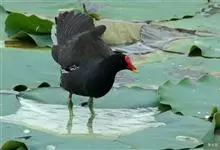 黑水鸡:是鹤形目、秧鸡科的鸟类,共有12个亚种。中型涉禽,体长24-35厘米。嘴长度适中,鼻孔狭长;头具额甲,后缘圆钝;嘴和额甲色彩鲜艳。翅圆形,第2枚初级飞羽最长,或第2枚和第3枚初级飞羽等长,…全部>>