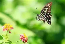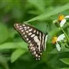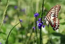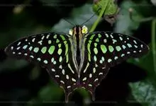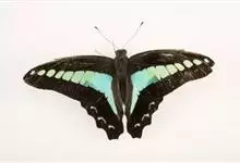 青带凤蝶Graphium sarpedon ,又名青凤蝶,是最普遍的中型凤蝶,飞行速度很快。青带凤蝶的翅膀中央有许多浅蓝色的斑点,很整齐地排列成一条直线。这些斑点由上而下逐渐变大,就像一条青色的带子。全部>>