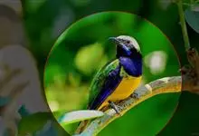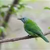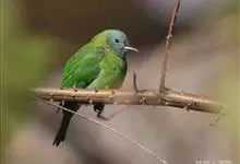 蓝翅叶鹎:小型鸟类,体长15-18厘米。雄鸟通体草绿色,尾蓝绿色,肩和翅亮蓝 色,胸缀有黄色,颏、喉黑色。雌鸟颏,喉蓝绿色。栖息在海拔1500米以下的常绿阔叶林、次生林和林缘疏林灌丛中。…全部>>