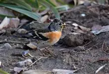 燕雀属小型鸟类,体长14-17厘米。嘴粗壮而尖,呈圆锥状。雄鸟从头至背辉黑色,背具黄褐色羽缘。腰白色,颏、喉、胸橙黄色,腹至尾下覆羽白色,两胁淡棕色而具黑色斑点。两翅和尾黑色,翅上具白斑。…全部>>