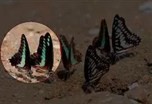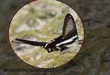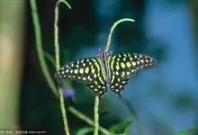 青带凤蝶Graphium sarpedon ,又名青凤蝶,是最普遍的中型凤蝶,飞行速度很快。青带凤蝶的翅膀中央有许多浅蓝色的斑点,很整齐地排列成一条直线。这些斑点由上而下逐渐变大,就像一条青色的带子。全部>>