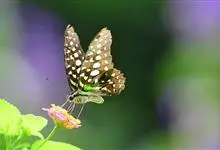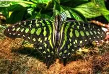 青带凤蝶Graphium sarpedon ,又名青凤蝶,是最普遍的中型凤蝶,飞行速度很快。青带凤蝶的翅膀中央有许多浅蓝色的斑点,很整齐地排列成一条直线。这些斑点由上而下逐渐变大,就像一条青色的带子。全部>>