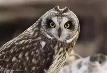 短耳鸮又名小耳木兔、田猫王、夜猫子等,是鸮形目鸱鸮科耳鸮属中小型猛禽动物。成鸟面盘显著,眼周黑色;眼先及内侧眉纹灰白色,面盘余部棕黄色杂以黑色细羽干纹;耳簇羽短小而几乎不外露,…全部>>