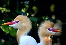 牛背鹭:体较肥胖,喙和颈较短粗。夏羽大都白色;头和颈橙黄色,前颈基部和背中央具羽枝分散成发状的橙黄色长形饰羽;前颈饰羽长达胸部,背部饰羽向后长达尾部,尾和其余体羽白色。冬羽通体全白色,个别头顶缀有黄色,…全部>>