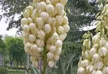 丝兰是天门冬科丝兰属植物。茎短或无茎;圆锥花序烛台状,花朵杯形,下垂,白色;叶基部呈剑形放射状,被白粉,革质;花期8—10月。丝兰原产于北美,在中国长江流域一带和华北地区均有栽培,长江以南地区也有分布。…全部>>