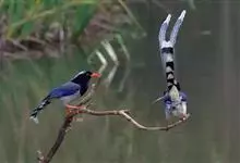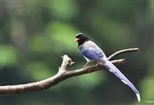 红嘴蓝鹊,别名山鹊、长尾鹊,是鸦科蓝鹊属的一种观赏性较强的大型鸣禽。该物种为体长54~65cm,头、颈、喉和胸黑色,头顶至后颈有一块白色至淡蓝白色或紫灰色块斑,其余上体紫蓝灰色或淡蓝灰褐色。尾长呈凸状,…全部>>