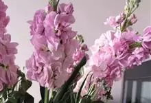 紫罗兰 W.T.Aiton)是十字花科紫罗兰属植物。二年生或多年生草本。植株高60厘米,布满灰白色的分枝柔毛;茎直立,多分枝,基部稍木质化;叶片为长圆形、倒披针形或匙形;总状花序顶生和腋生;花多数,…全部>>