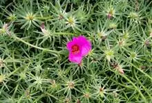 大花马齿苋:一年生草本,高10-30厘米。茎平卧或斜升,紫红色,多分枝,节上丛生毛。叶密集枝端,较下的叶不规则互生,叶片细圆柱形,无毛。花单生或数朵簇生枝端,直径2.5-4厘米,…全部>>