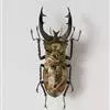 中国大锹,鞘翅目锹甲科刀锹属昆虫,雄虫体长多为40—-75毫米,宽15—30毫米。体扁宽,长椭圆形,前胸背板中点最宽,四缘有边框,前缘波形。全体黑色,背面不被毛,光泽中等。雌虫体长多为31—52毫米,…全部>>