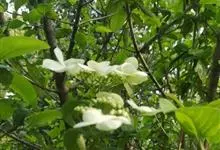 蝴蝶戏珠花 Miq.)是荚蒾科荚蒾属植物。落叶灌木,高达3米;当年小枝浅黄褐色。叶较狭,宽卵形或矩圆状卵形,有时椭圆状倒卵形。花序直径4-10厘米,外围有4-6朵白色、木型的不孕花。果实先红色后变黑色,…全部>>