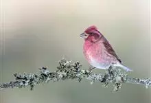 藏朱雀:全长约17-18厘米。雄鸟头部深红色具光辉,喉部暗红色具白色点斑;背部灰白色,各羽具玫瑰红色羽端,形成许多斑纹;腰部淡玫瑰红色;翅暗褐色,沾灰白,羽端沾玫瑰红或灰白色;尾暗棕色,端缘玫瑰红色…全部>>