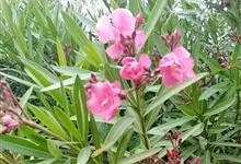 夹竹桃,又名红花夹竹桃、欧洲夹竹桃,是夹竹桃科夹竹桃属的一种常绿直立大灌木,枝条灰绿色,含水液。叶披针形,3叶轮生。聚伞花序顶生,花冠粉红至深红色,花冠漏斗状,有特殊香味。蓇葖果,圆柱形。种子长圆形,…全部>>