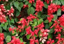 一串红,又称爆仗红、象牙红,为唇形科鼠尾草属植物。花序修长,色红鲜艳,花期又长,适应性强,为中国城市和园林中最普遍栽培的草本花卉。原产巴西、南美洲。喜温暖和阳光充足环境。不耐寒,耐半阴,忌霜雪和高温,…全部>>
