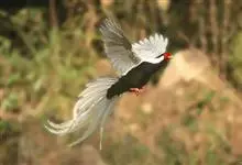 白鹇,是鸡形目雉科鹇属的一种留鸟。雄鸟上体白色并具黑色纹,下体黑色,头顶具黑色长羽冠,尾白而长;雌鸟体型较小,以橄榄褐色为主,下体具白色或皮黄色细纹;虹膜褐色,眼周具红色裸皮,喙黄色,脚鲜红色。…全部>>