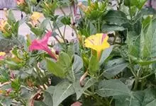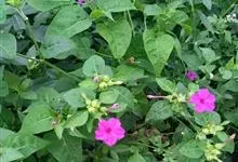 即紫茉莉,英文名:Four-o'clock,Marvel of Peru,为紫茉莉科、紫茉莉属多年生草本植物,一年生栽培。株高50~80cm。根粗壮,茎多分枝而散生。叶对生,卵形或心脏形。花数朵簇生…全部>>